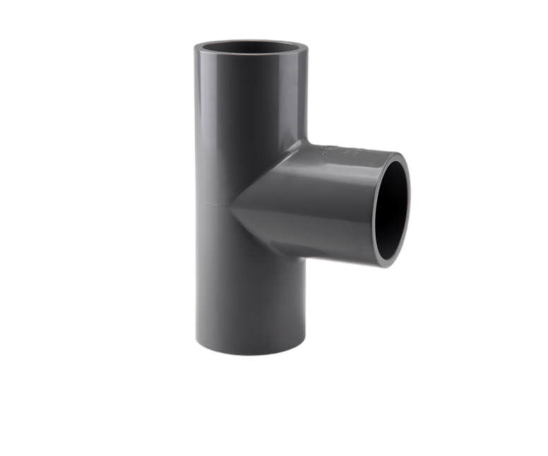 Complete PVC fittings range: 45°/90° elbows, tees, reducing tees, crosses, couplers (female/male), reducers, end caps, backing rings and ball valves. Suitable for cold-water, drainage and conduit systems.